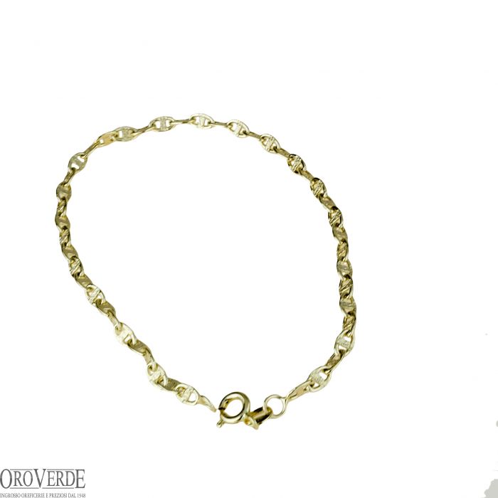 Bracciale caratterizzato da una maglia traversino satinata e ritorta, con una larghezza di 4 mm, che conferisce al gioiello un aspetto distintivo e contemporaneo. La struttura della catena vuota offre una leggerezza e una versatilità, rendendolo adatto a diverse occasioni. Ogni maglia è lavorata con precisione artigianale, garantendo una finitura impeccabile e una resistenza nel tempo, ideale per il mercato B2B di gioielleria e oreficeria.