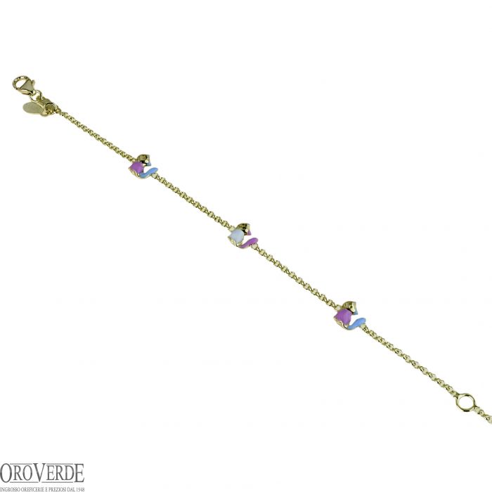 Il bracciale per bambina è realizzato con una raffinata catena rolo' che misura 14 cm, caratterizzata da una riduzione a 12 cm per una vestibilità ottimale. Le decorazioni a forma di gattini smaltati, finemente dettagliate, conferiscono un tocco di originalità e vivacità al design, mentre la lavorazione artigianale assicura una qualità superiore e una durata nel tempo. La struttura leggera e la chiusura sicura rendono questo gioiello non solo un accessorio di stile, ma anche pratico per l'uso quotidiano.