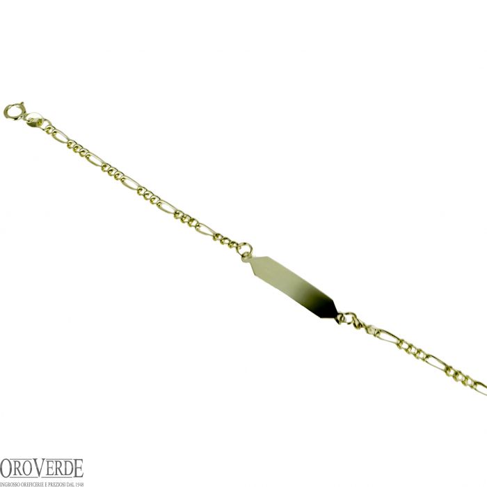 Bracciale caratterizzato da una raffinata struttura a catena maglia tre + uno, che conferisce al gioiello un aspetto distintivo e moderno. La targa centrale, elegante e personalizzabile, offre l'opportunità di incastonare incisioni o dettagli personalizzati, rendendo ogni pezzo unico. La lavorazione artigianale di alta qualità assicura una finitura impeccabile, evidenziando la cura nei dettagli e l'attenzione alla funzionalità, garantendo al contempo un indosso confortevole e sicuro.