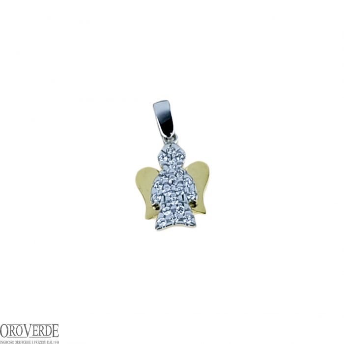 Ciondolo a forma di angelo, realizzato con una raffinata lavorazione di zirconi, caratterizzato da un design elegante e delicato. Le pietre, incastonate in un pavè brillante, riflettono la luce in modo straordinario, conferendo al pezzo una luminosità unica. Con un'altezza di 15 mm, il ciondolo è pensato per un pubblico femminile e si distingue per la sua qualità artigianale, risultando ideale per l'inserimento in collezioni di gioielleria di alta gamma.