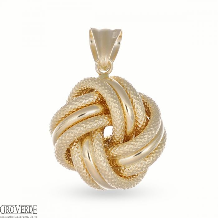 Ciondolo in oro 18 carati a forma di nodo intrecciato larg.18mm.