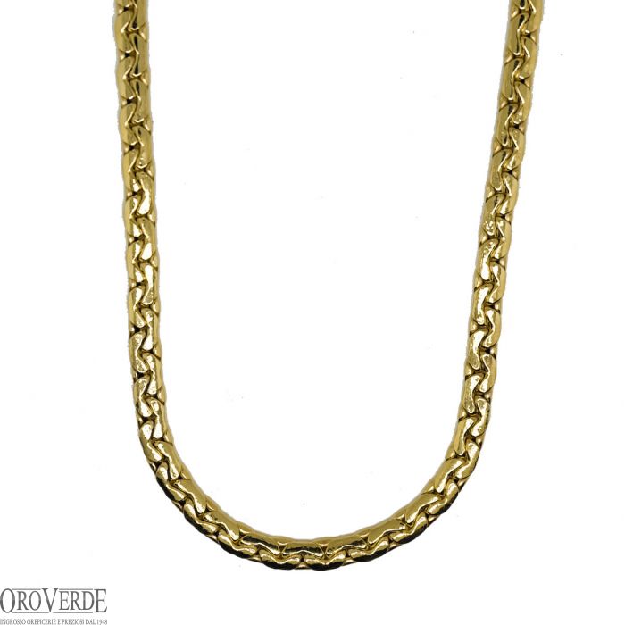 Collana realizzata con maglia cobra, caratterizzata da una struttura piatta e lucida che conferisce al gioiello un aspetto distintivo e moderno. La larghezza di 4 mm permette di ottenere un equilibrio perfetto tra robustezza e leggerezza, rendendo la collana versatile per ogni occasione. La lavorazione artigianale garantisce una finitura impeccabile, esaltando la qualitĂ dei materiali utilizzati e il design contemporaneo, ideale per una clientela esigente nel settore della gioielleria.